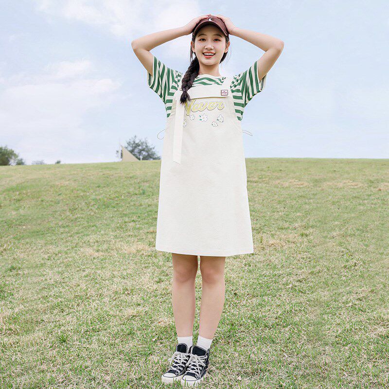 女大童假两件背带裙2024夏季新款连衣裙洋气时髦初中学生薄款裙子