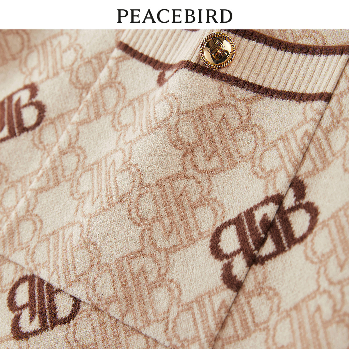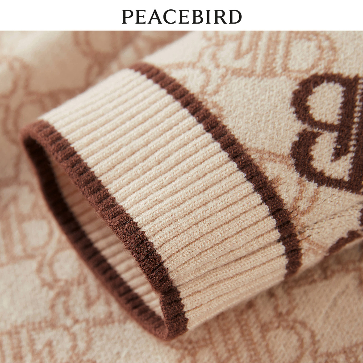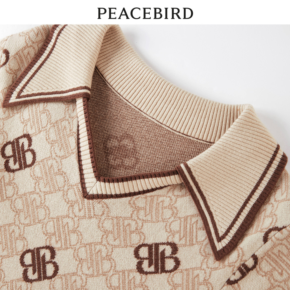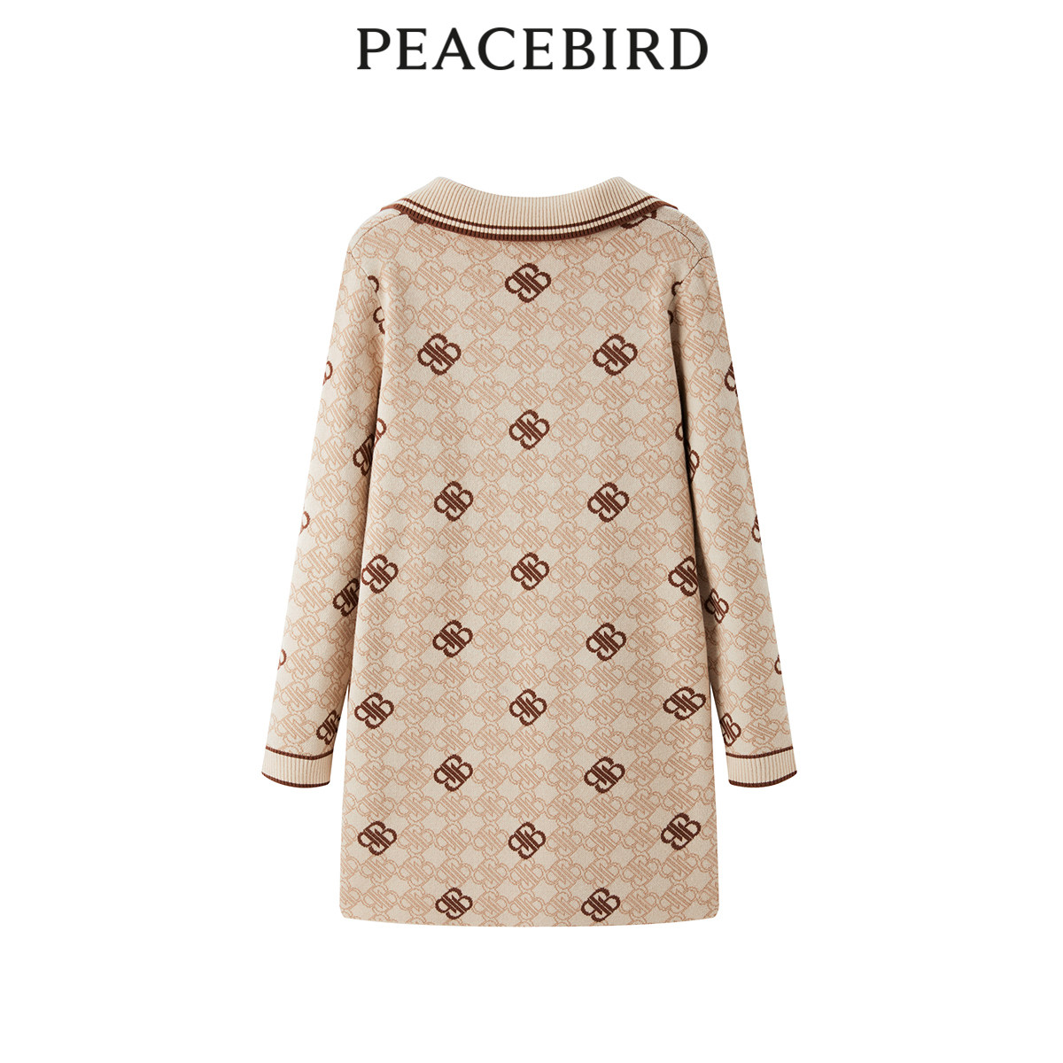 太平鸟女装春季老花纹样翻领厚款长袖连衣裙A1FAD4626