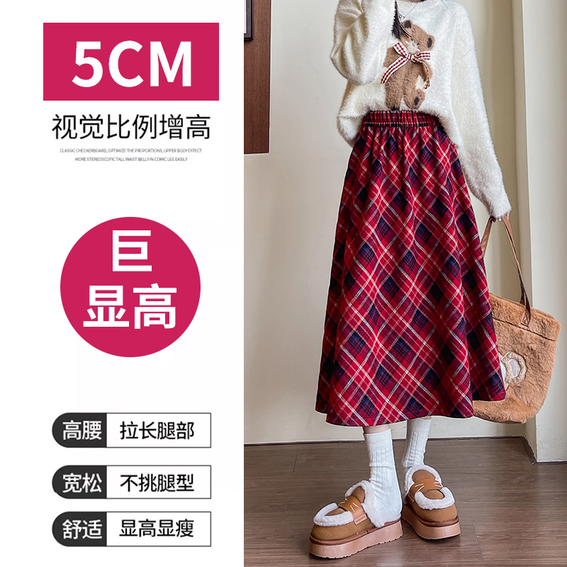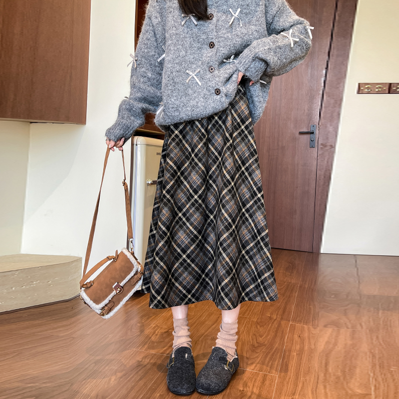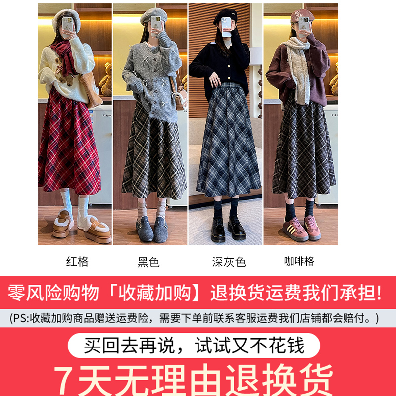 中长款毛呢伞裙秋季格纹a字高腰