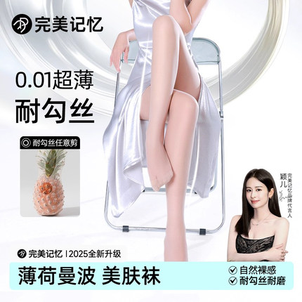 完美记忆丝袜女春秋薄款耐勾丝秋季菠萝肉色美肤连裤袜薄荷曼波绿