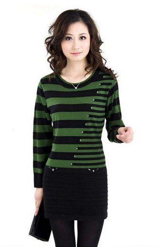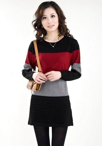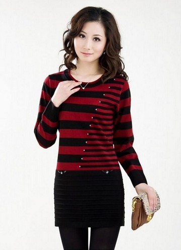 中老年宽松圆领中长款毛衣