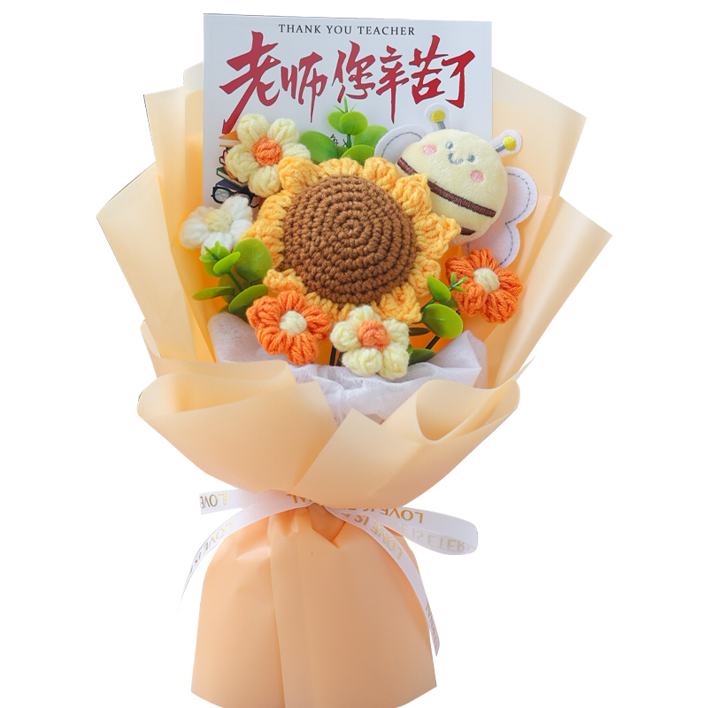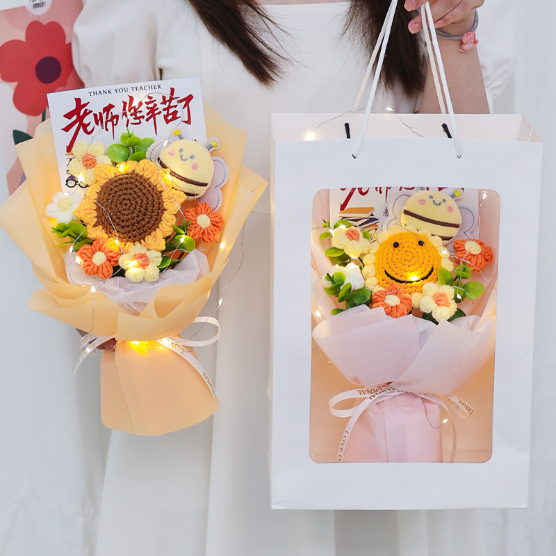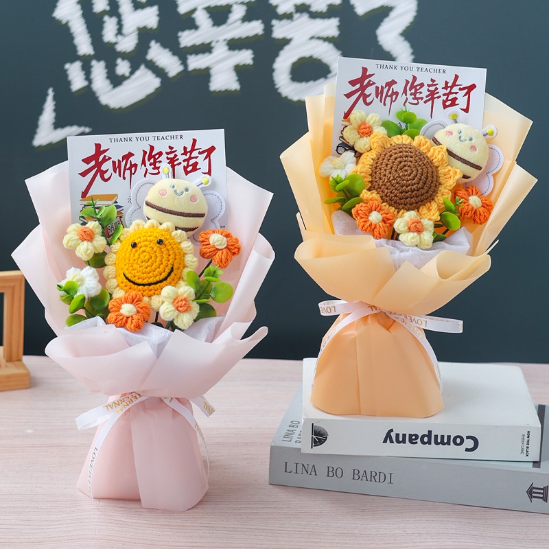 创意实用礼物成品针织向日葵小蜜蜂毛线花幼儿园小学送老师花束