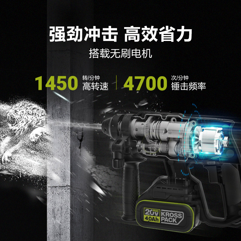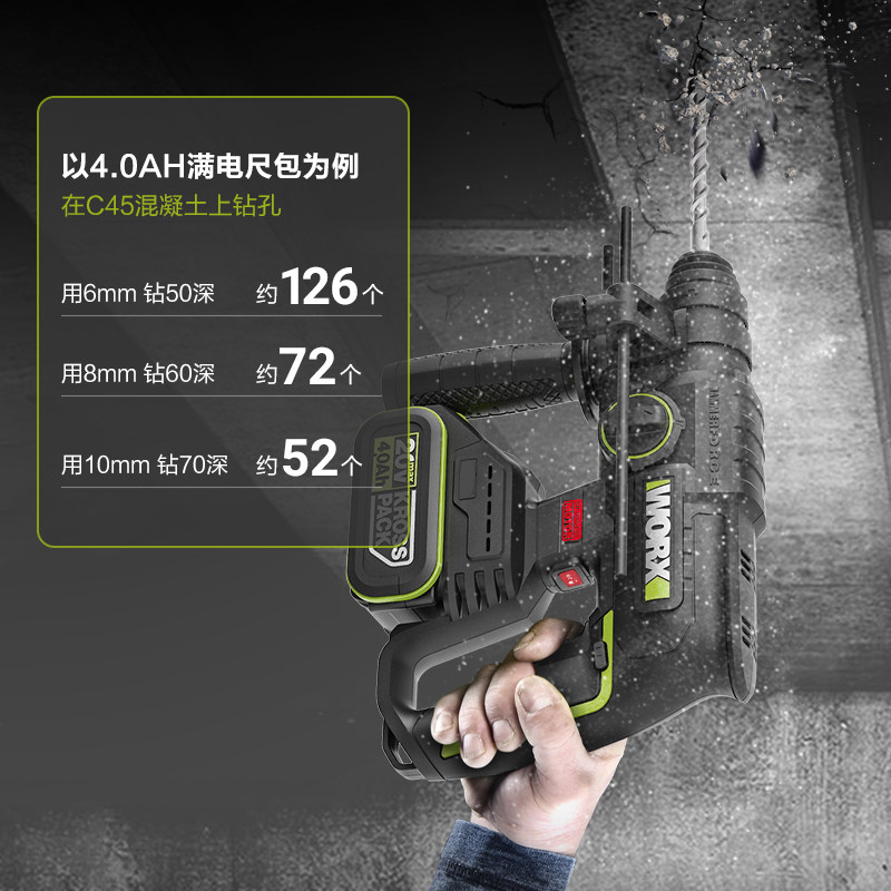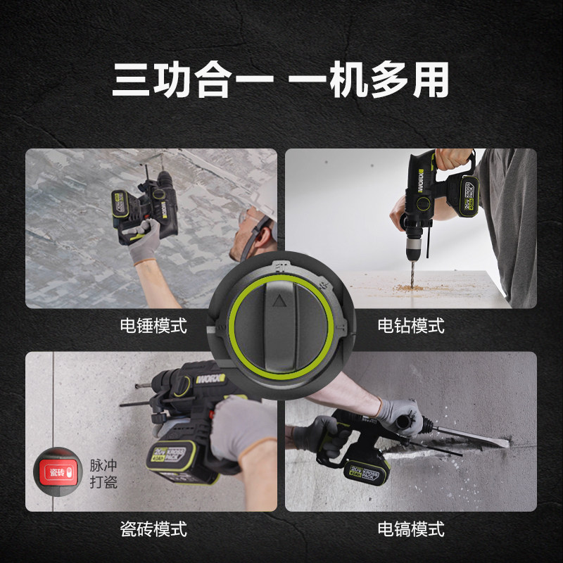 威克士无刷锂电电锤WU387充电电锤电镐电锺冲击钻电动打混凝土