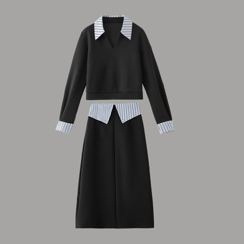 今年流行套装裙2025春秋新款黑色衬衫领卫衣中长款半身裙子两件套