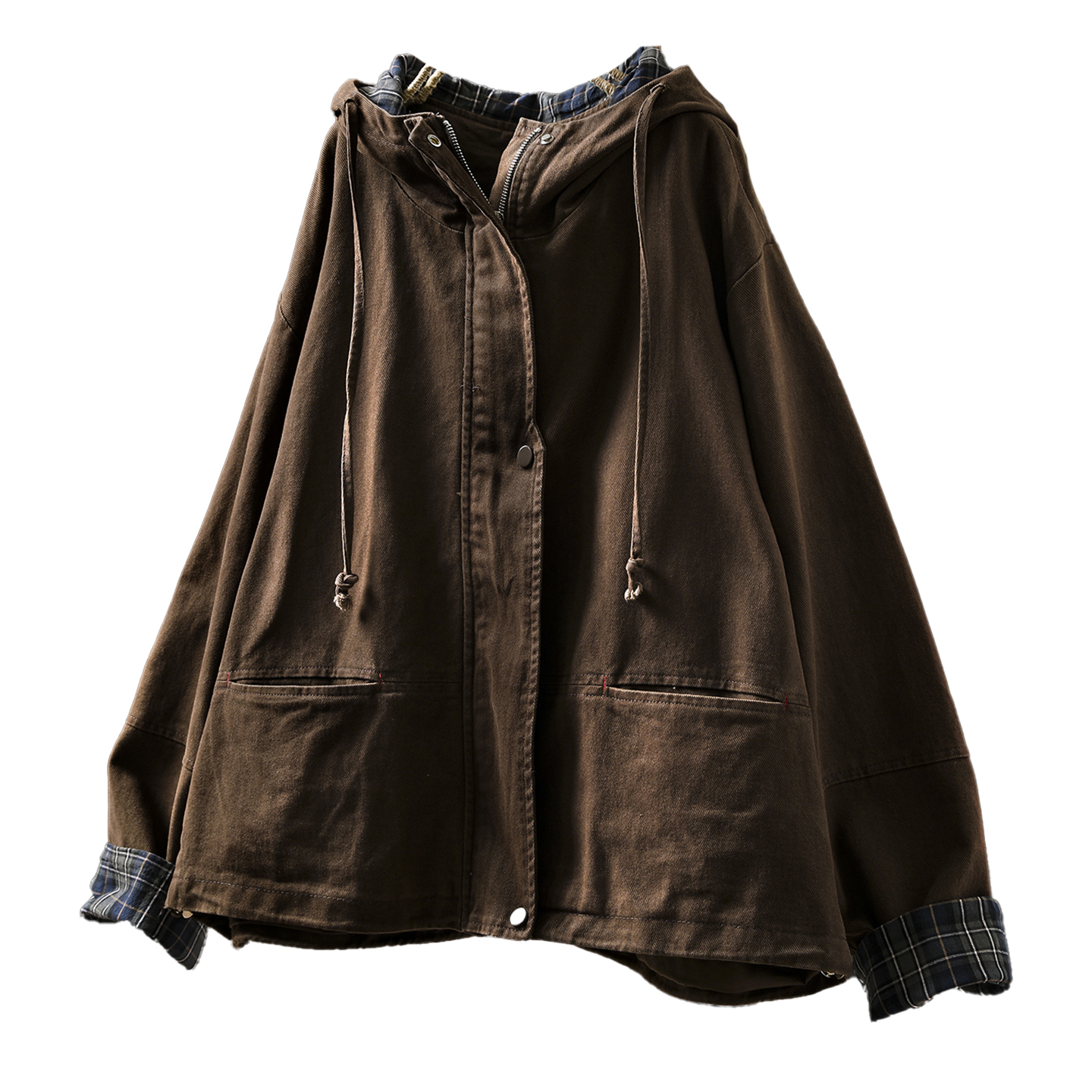 秋季外套2025新款女连帽韩系慵懒松弛感复古休闲宽松长袖风衣外套