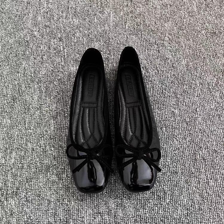 品牌真皮红色单鞋女2025新款法式配裙子气质春秋平底浅口芭蕾舞鞋