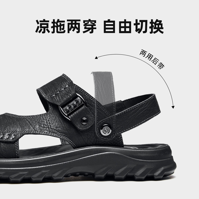 骆驼2025夏季新款舒适抓纹柔软透气凉拖两穿商务凉鞋男士爸爸