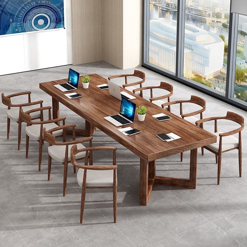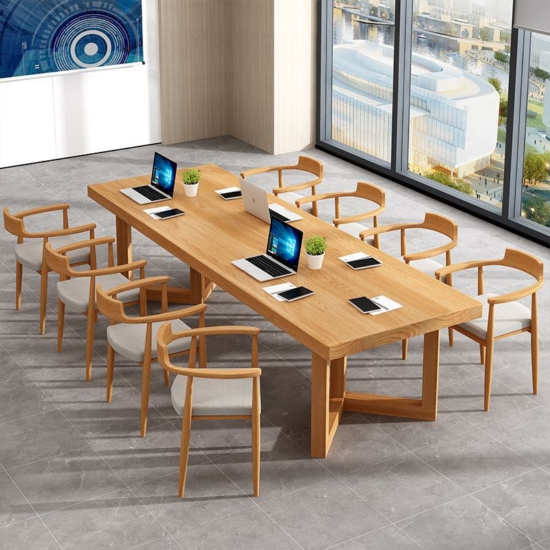 简约现代全实木办公会议桌椅组合图书馆长条大桌子办公长桌工作台