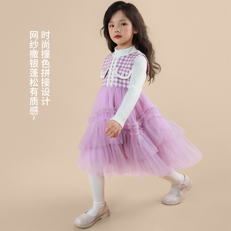 陈大猪女童千鸟格连衣裙2025新款秋冬装儿童新年衣服洋气时髦套装