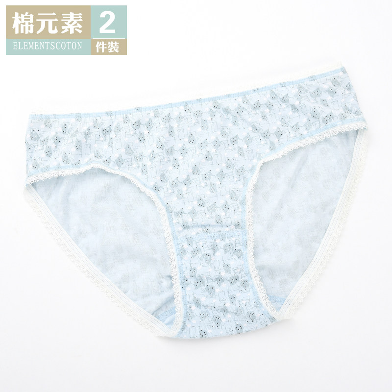 2条装棉元素女内裤 纯棉三角中低腰简约舒适薄款三角内裤女LM598