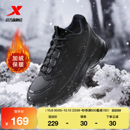 特步游牧棉鞋男冬季加绒大棉高帮情侣休闲鞋厚底增高运动鞋子女鞋