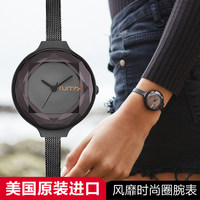 rumbatime美国原装进口金属网格链条表带刻面手表女石英表腕表