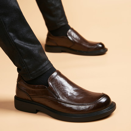 夏季新款商务正装皮鞋男真皮圆头一脚蹬男鞋韩版潮流休闲男士皮鞋