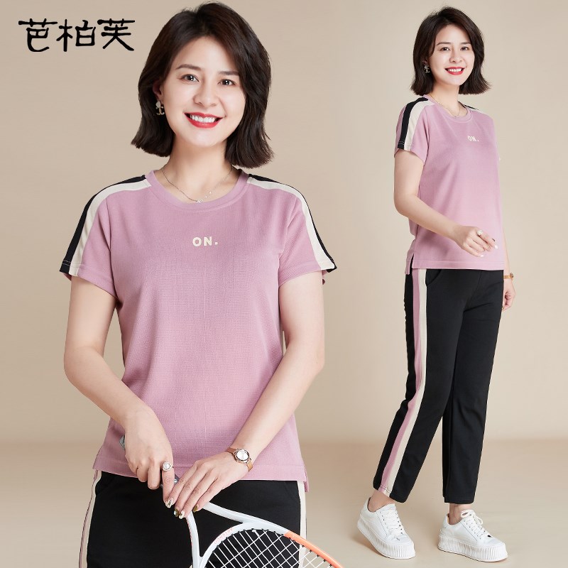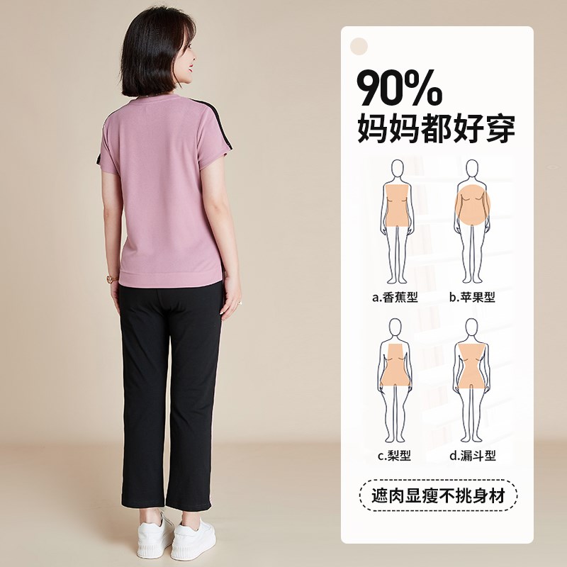 中年妈妈夏装运动服套装2024新款短袖t恤中老年女洋气休闲两件套