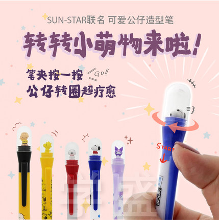 日本SUN-STAR圆珠笔自动铅笔旋转公仔头三丽鸥史努比迪士尼库洛米