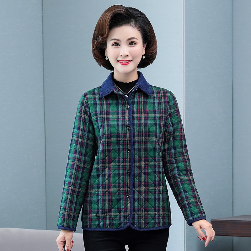 秋冬款全棉小棉袄中老年女装夹棉衬衫纯棉格子妈妈婆婆薄棉衣外套