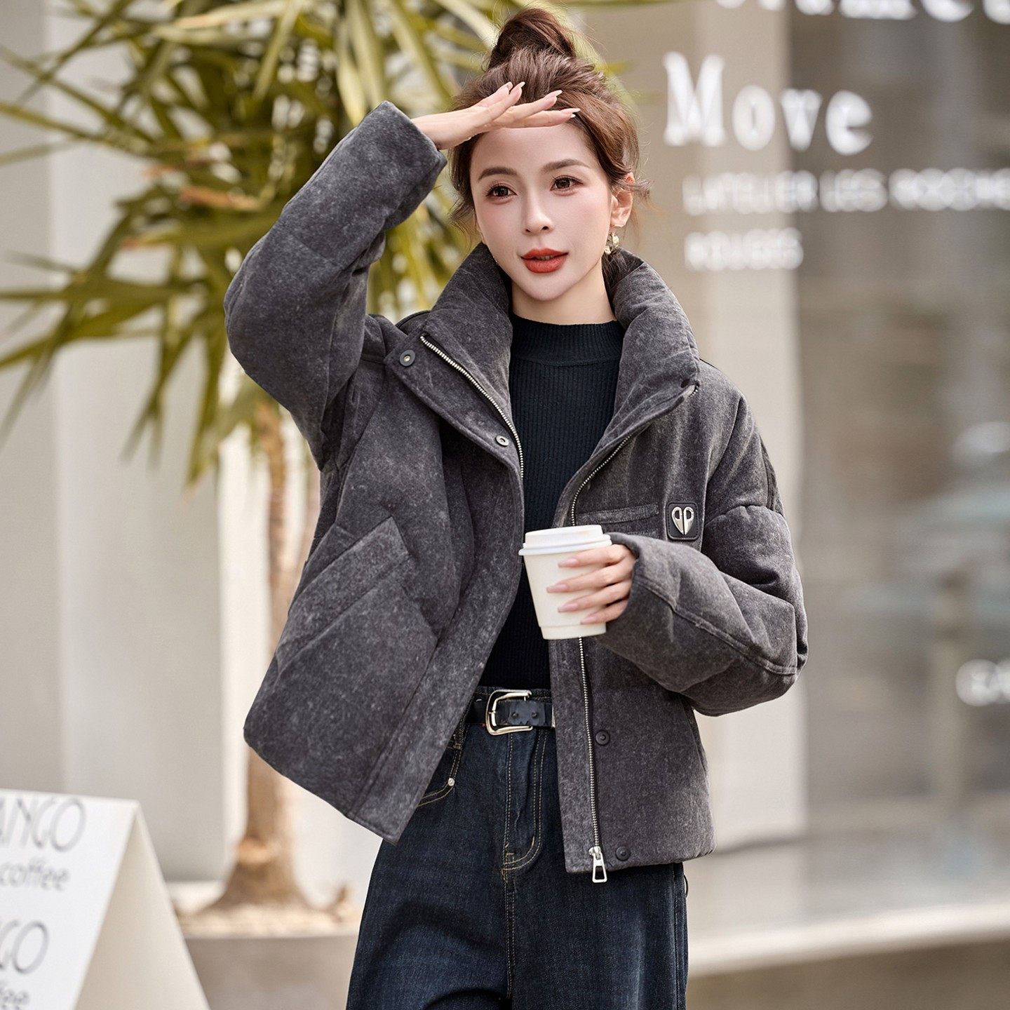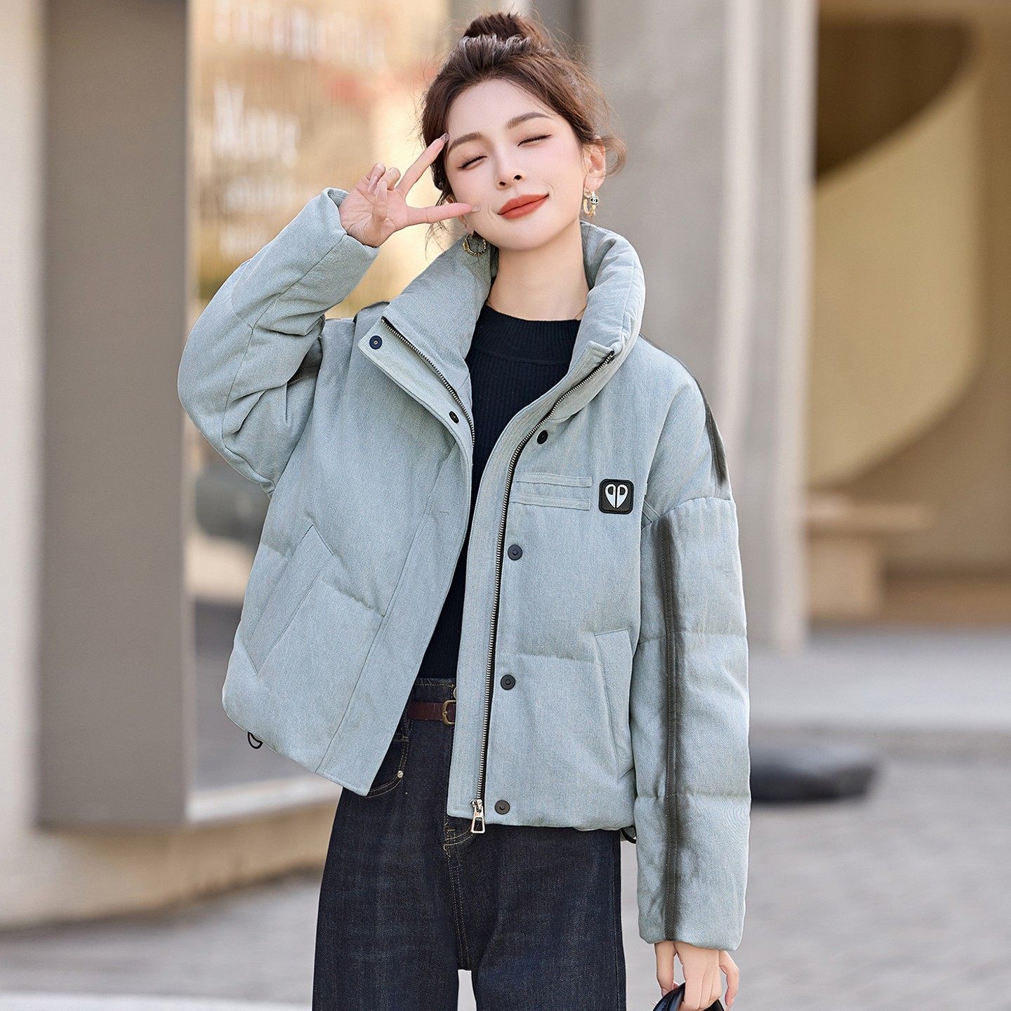 牛仔羽绒服女25年冬新款短款加厚
