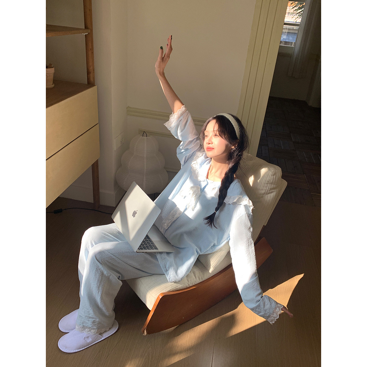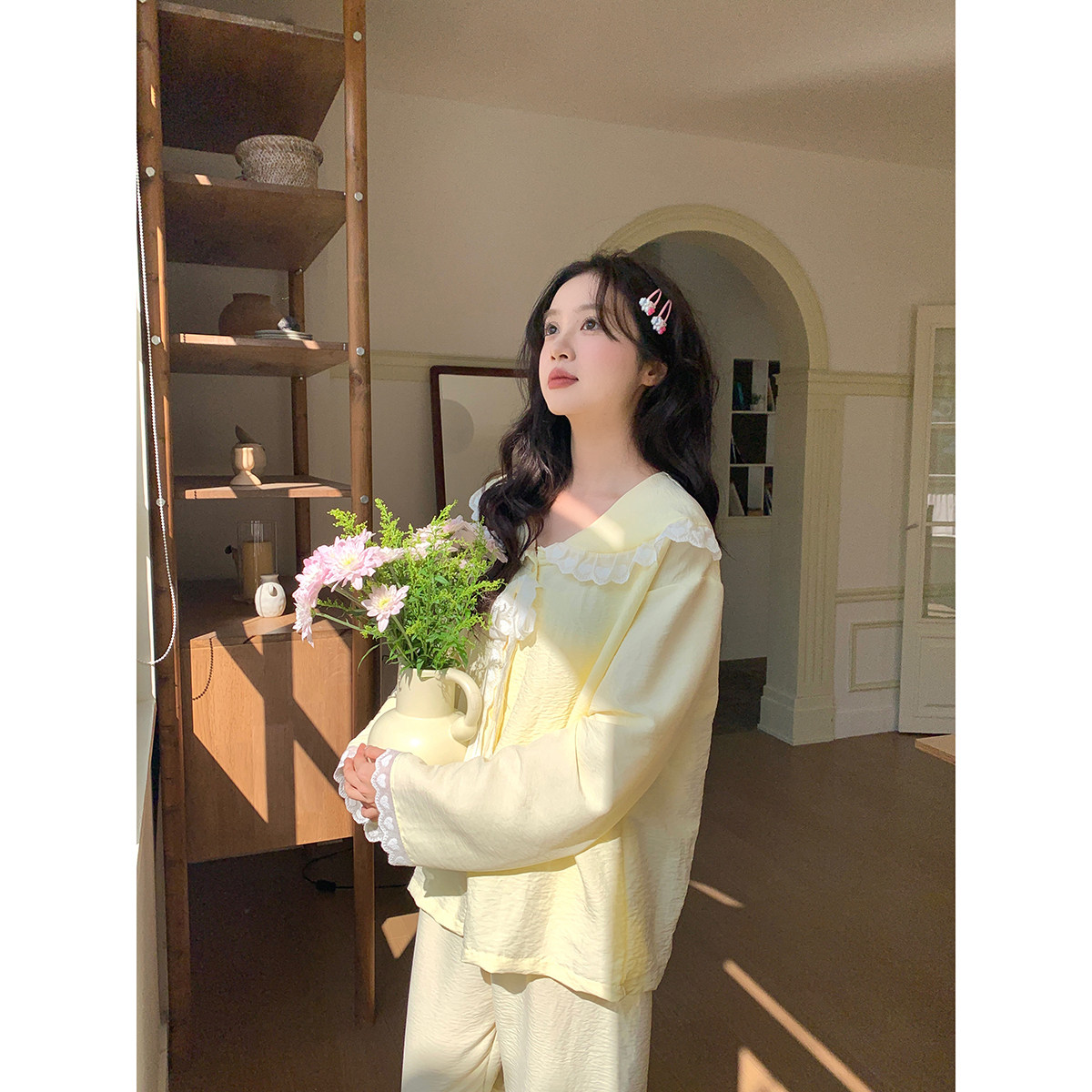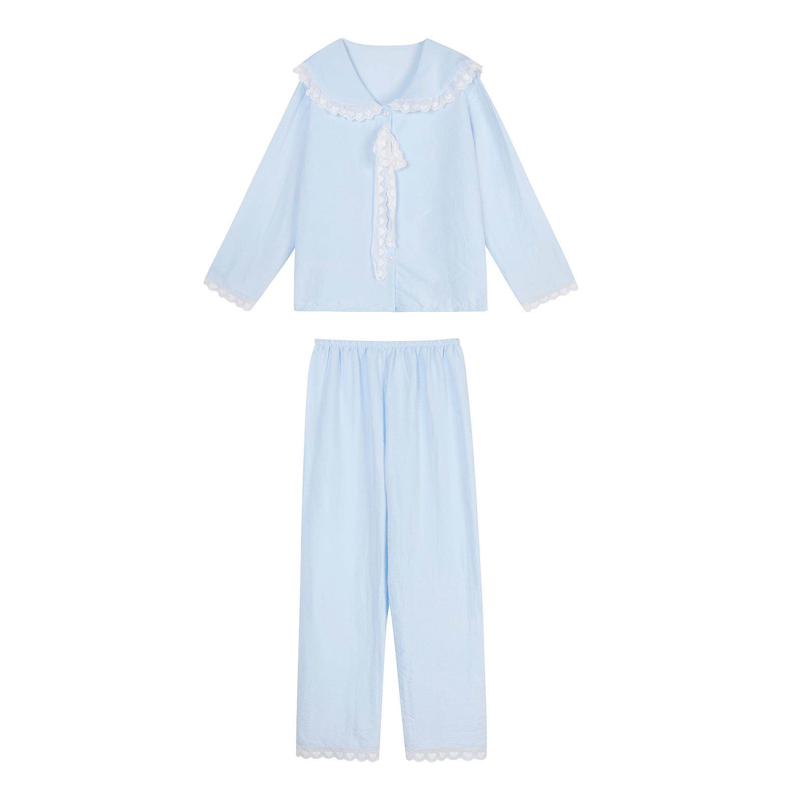 馨帮帮Homedress 撞色系带蕾丝边睡衣女春季薄款宽松可外穿家居服