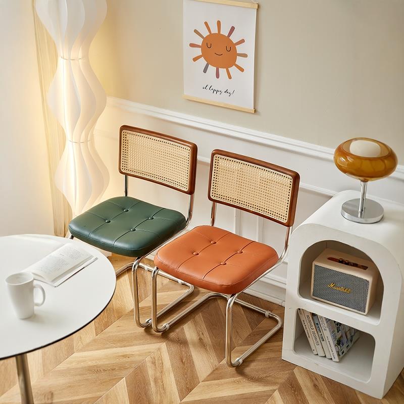 实木餐椅家用中古风藤编椅子靠背网红弓形椅复古民宿咖啡厅餐桌椅