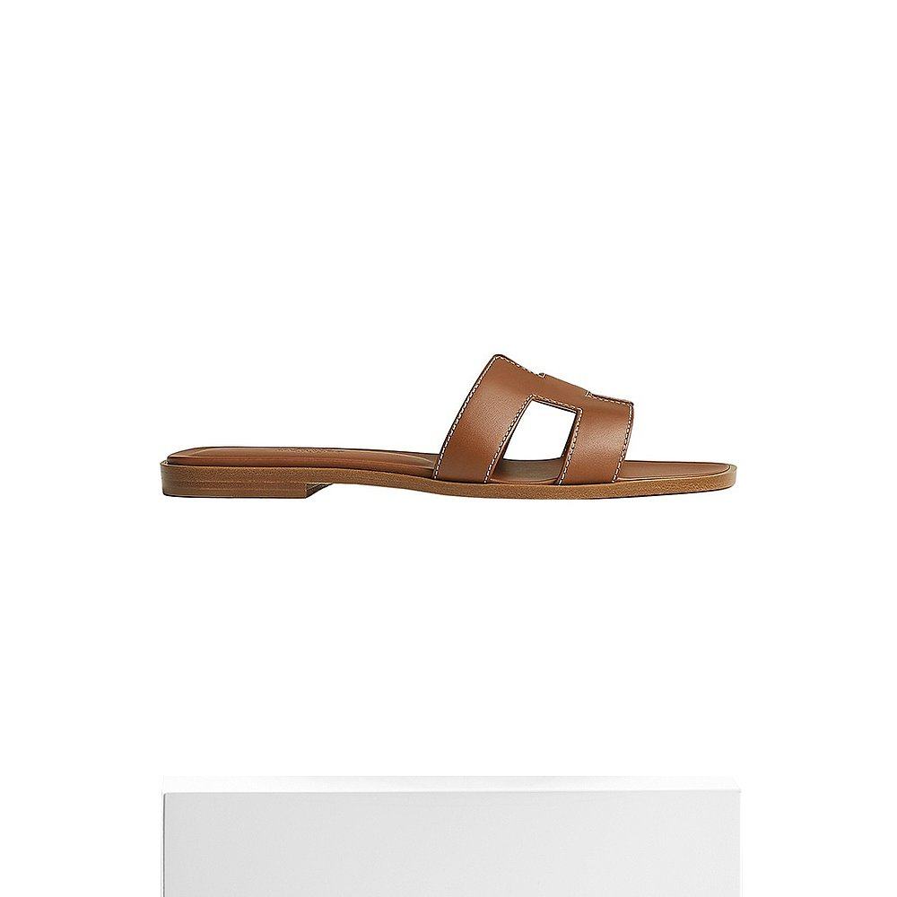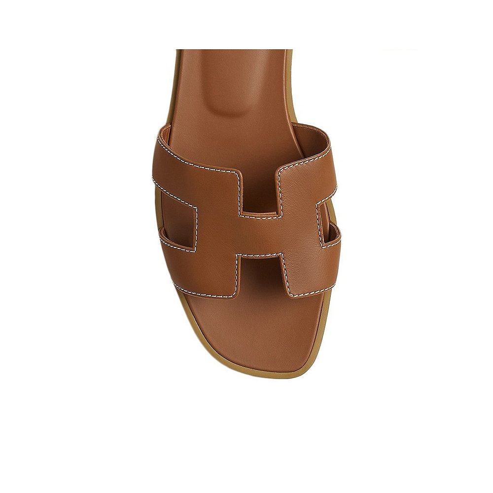 自营1h可退 欧洲直邮Hermes/爱马仕 女士驼棕色皮革H形鞋面经典方