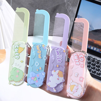 创意随身带梳子小镜子套装户外便携镜梳一体折叠化妆镜迷你镜子