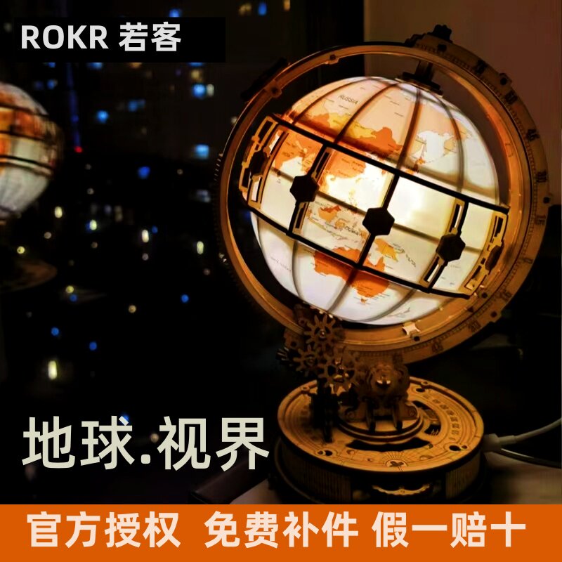 ROKR若客地球仪视界木质拼装手工DIY 3D模型玩具礼物创意桌面摆件