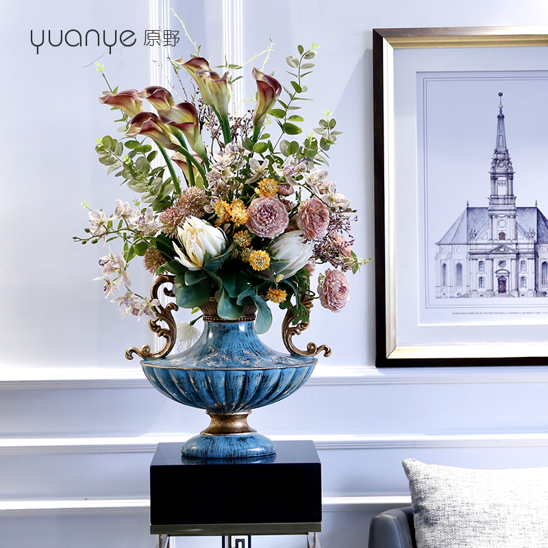 欧式美式家居高档仿真花假花摆设件客厅玄关餐桌电视柜装饰花摆花
