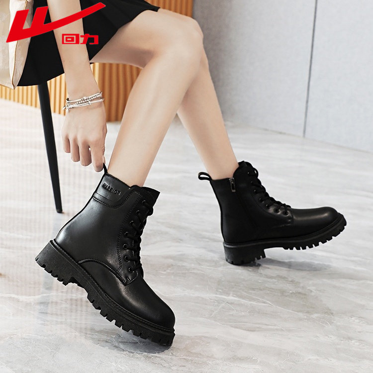 回力马丁靴女2025新款女士冬季新款厚底英伦风百搭黑色短靴子女