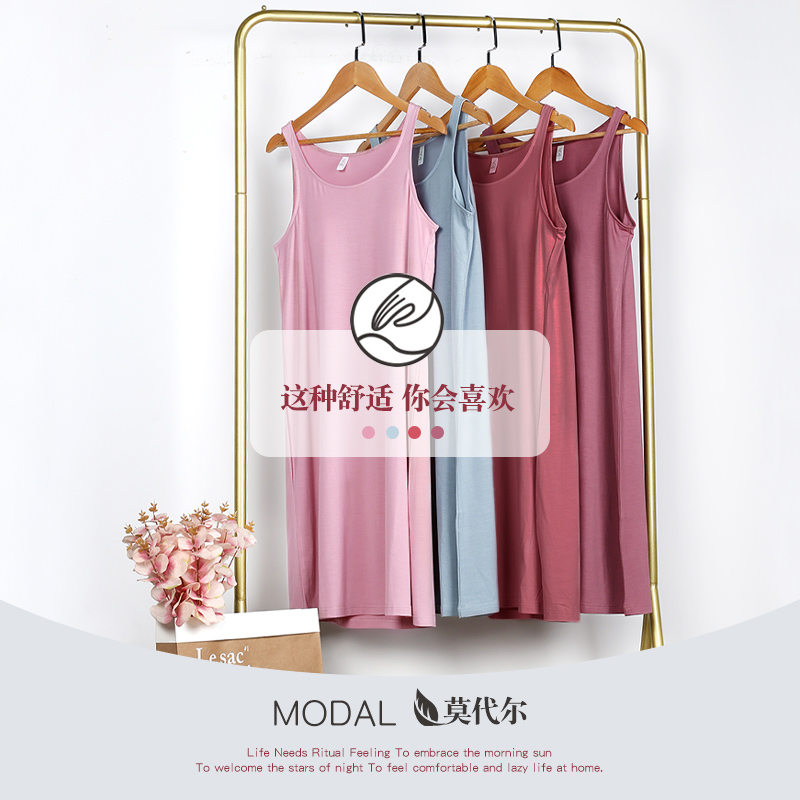 睡裙女夏季薄款莫代尔无袖背心带胸垫睡衣裙子孕妇夏天大码连衣裙