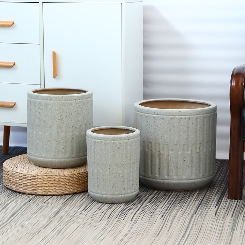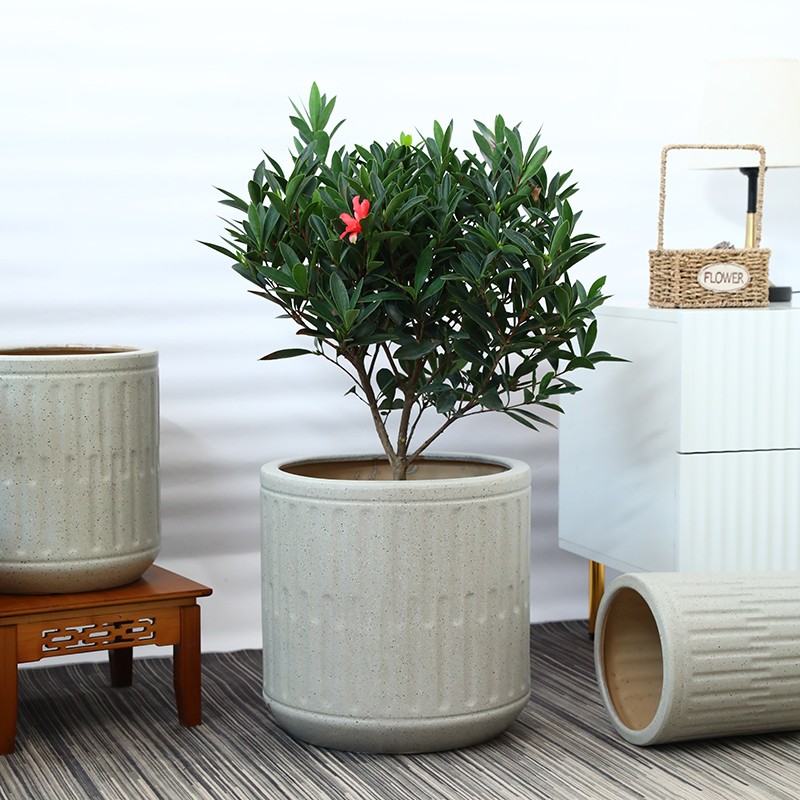 陶瓷花盆特大号简约竖条纹落地庭院客厅阳台金钱树种树绿植大花盆