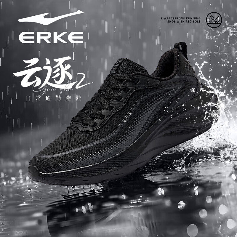 云逐2鸿星尔克新款男子跑步鞋革面防泼水运动鞋男鞋男士通勤鞋子
