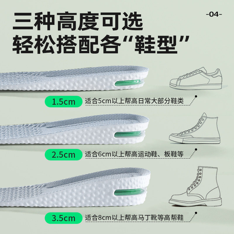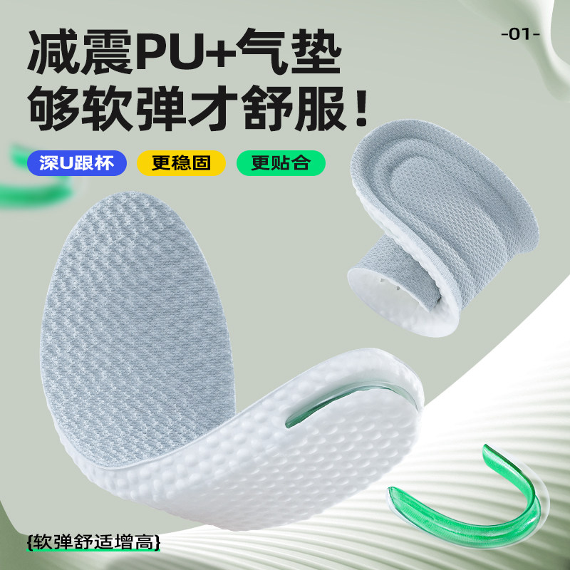 增高鞋垫女新款男透气吸汗运动气垫减震舒适爆米花隐形内增高男