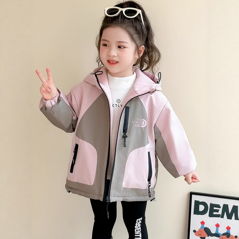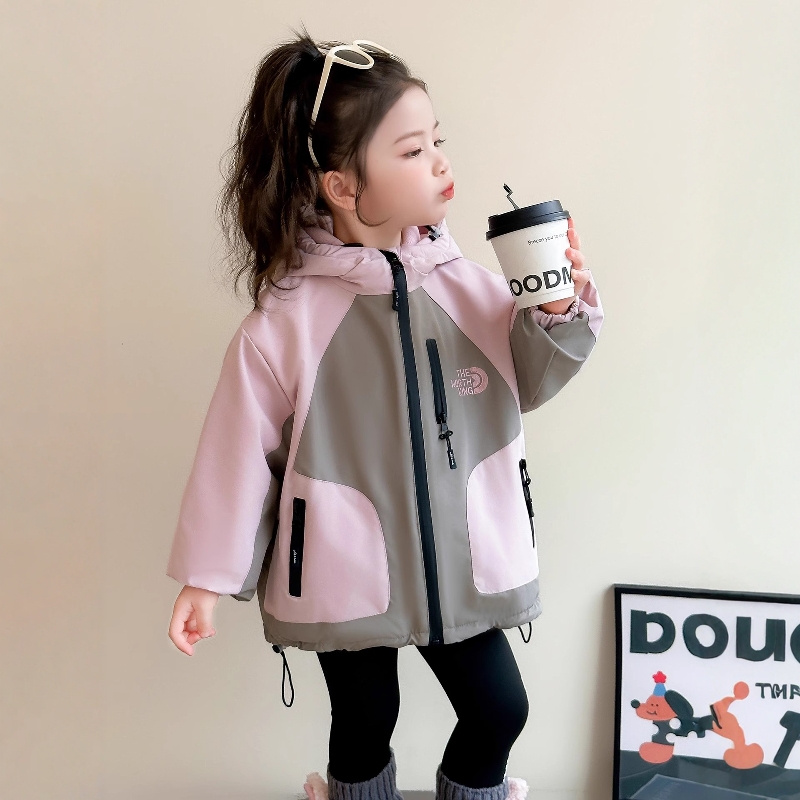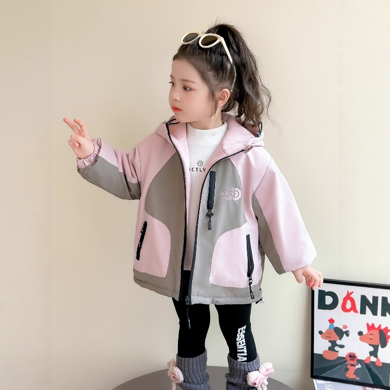 法国Uamtor女童冲锋衣加绒外套秋冬2025新款炸街女童两面穿夹克衫