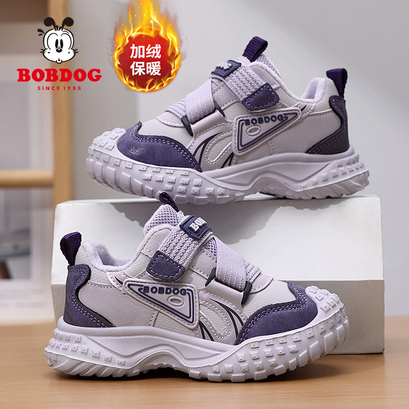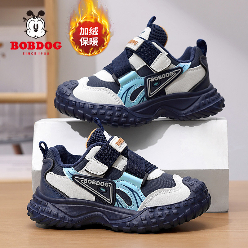 巴布豆男童运动鞋冬季2025新款加绒二棉保暖防水儿童轻便跑步鞋