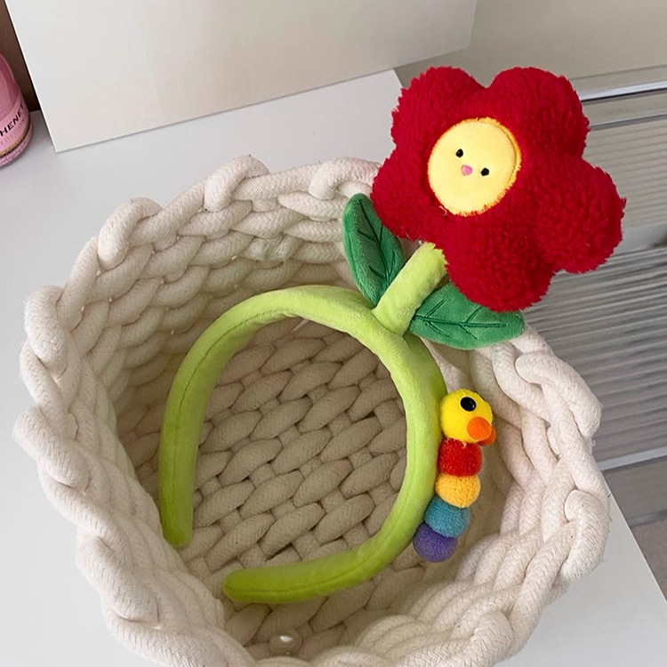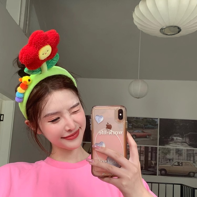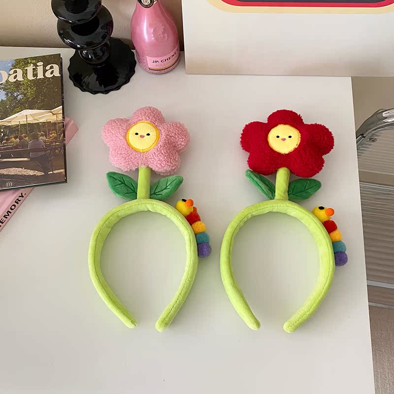 可爱花朵玩偶洗脸发箍搞怪拍照头箍化妆外出毛绒发卡少女卡通发饰