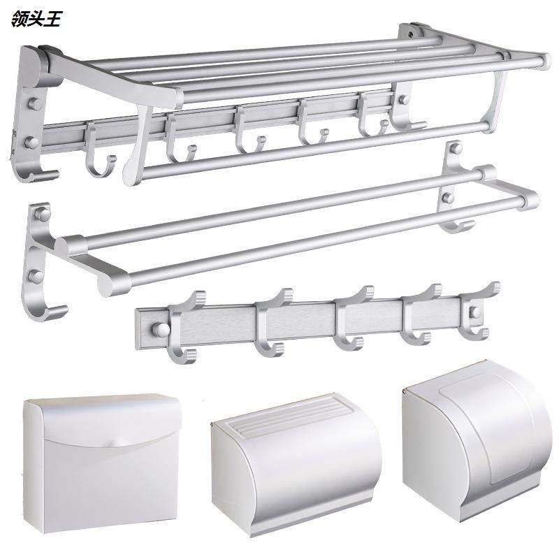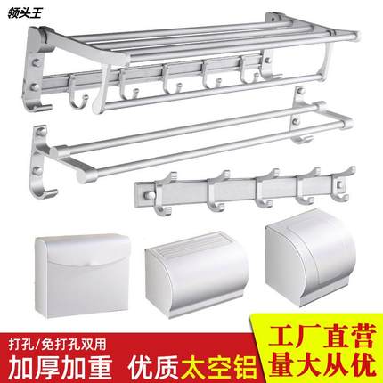 太空铝免打孔五金挂件活动毛巾杆毛巾架浴巾架置物架套装卫浴五金