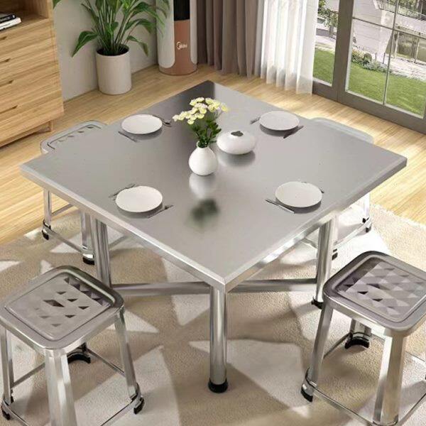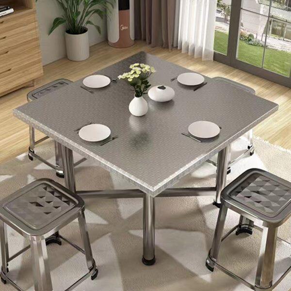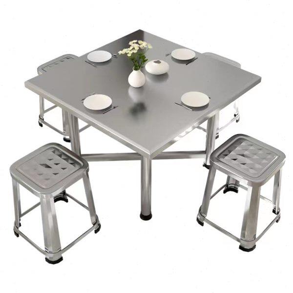 不锈钢餐桌长方形304不绣钢四方桌商用拉丝白钢员工食堂折叠桌