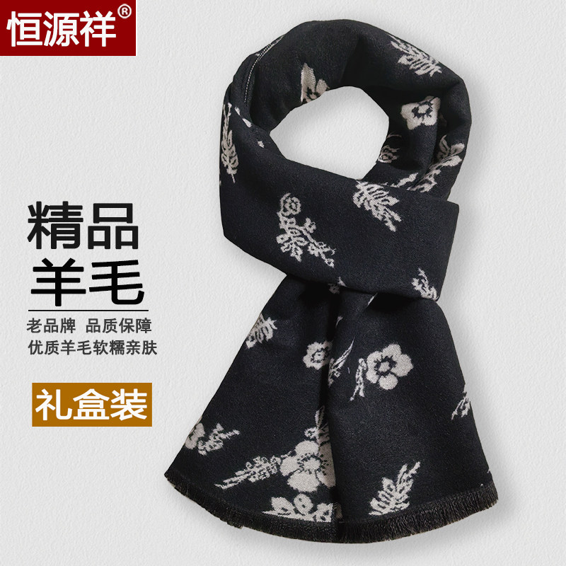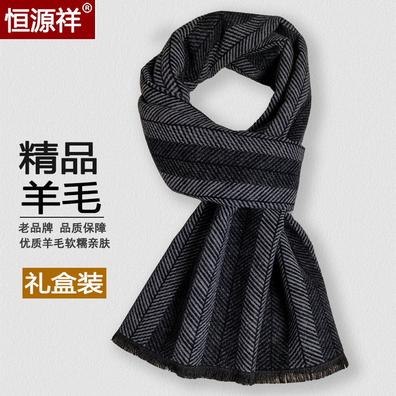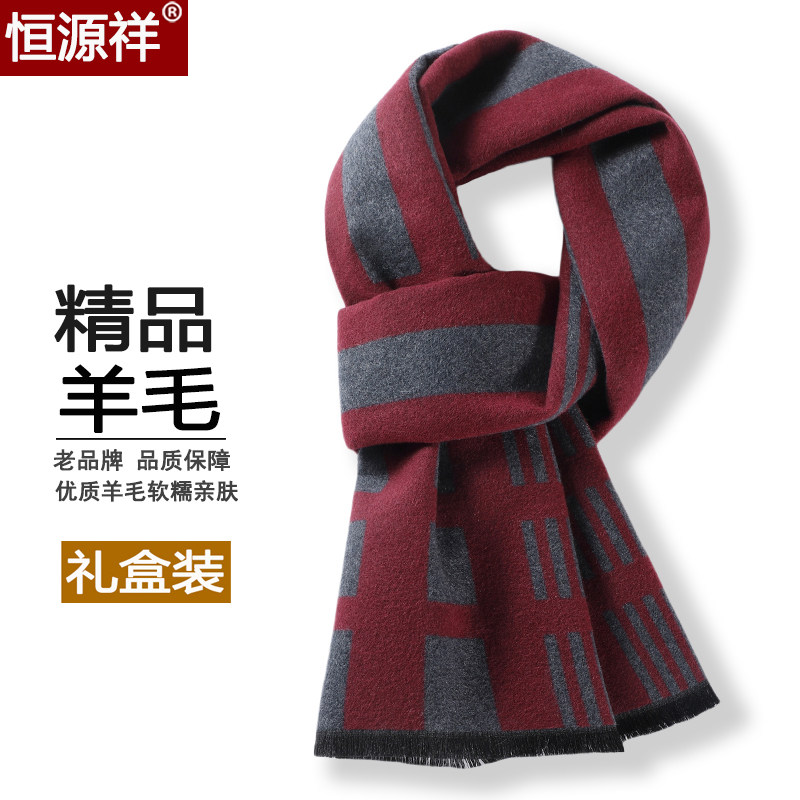 恒源祥山羊毛围巾男士高档英伦风羊绒百搭格子加厚围脖冬生日礼盒