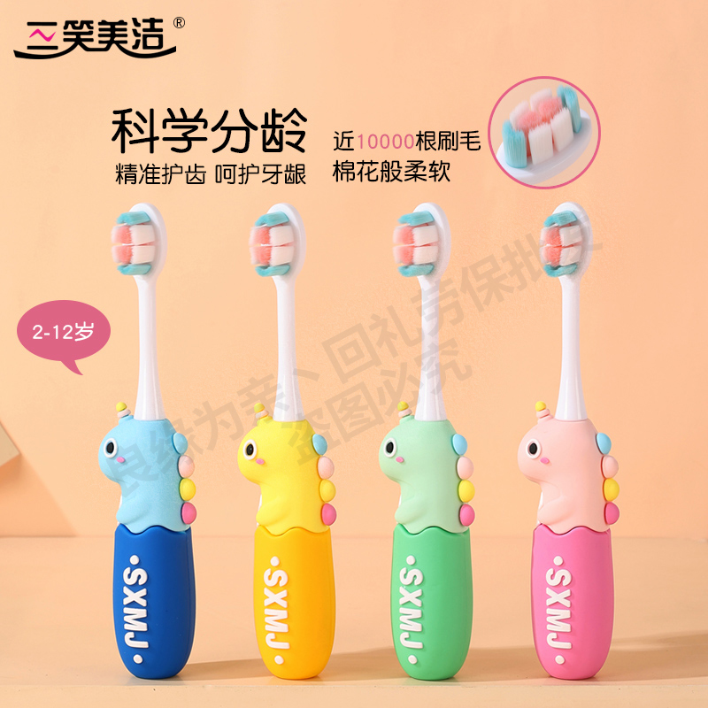 三笑美洁儿童牙刷细软毛净齿卡通趣味小头牙刷3-12换牙期口腔清洁