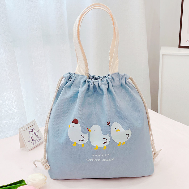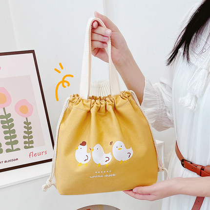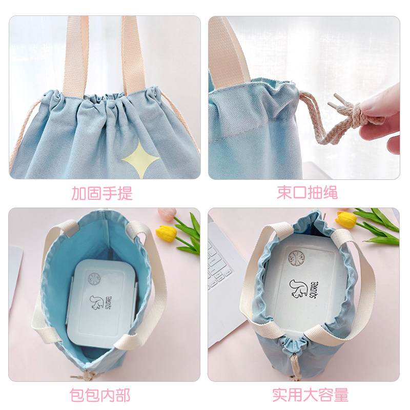 饭盒袋女手提包帆布包抽绳手拎束口布袋子上班族学生带饭包便当包
