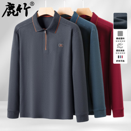 中老年男装长袖t恤新款爸爸秋装拉链领德绒打底衫中年男士上衣服