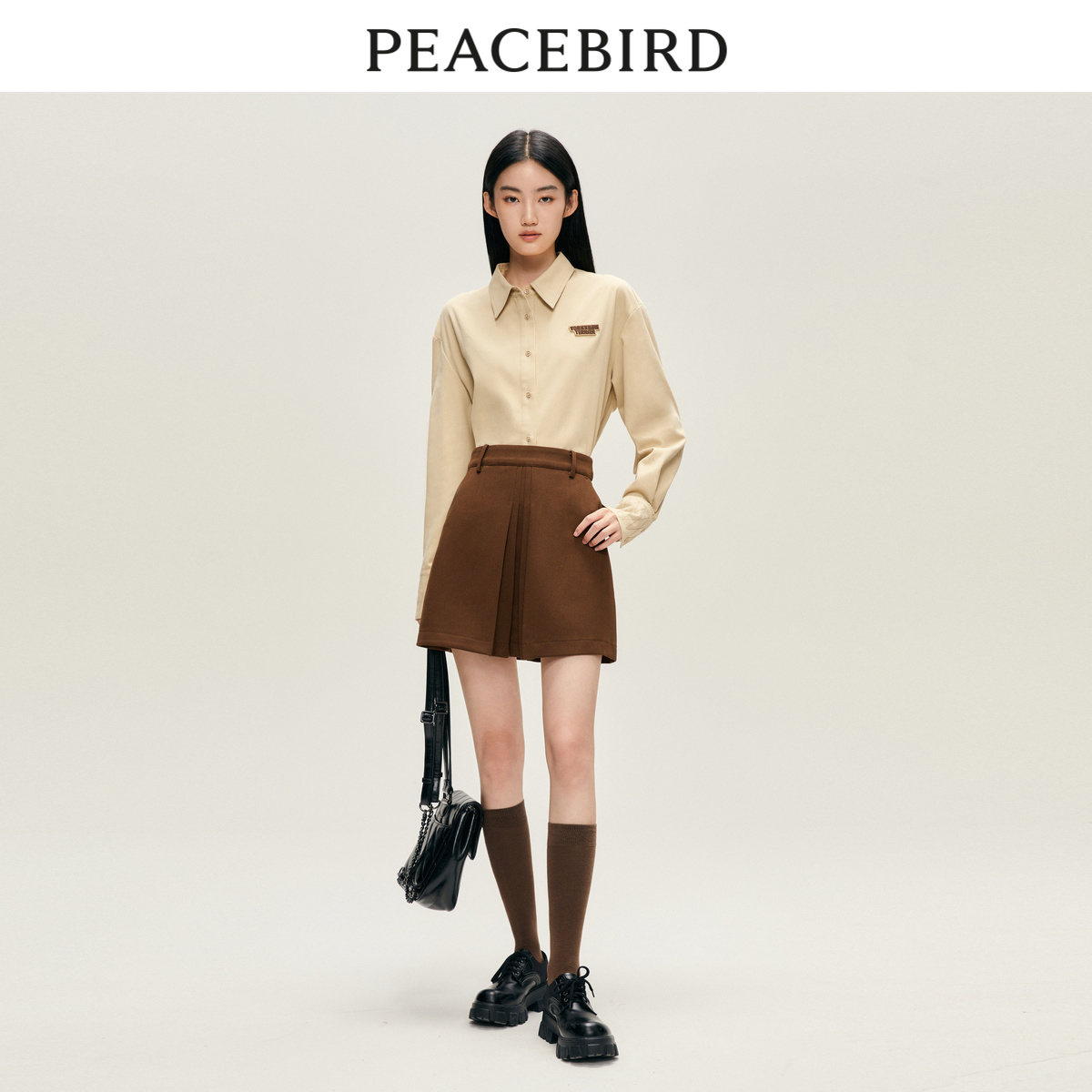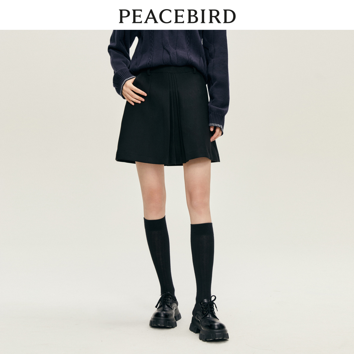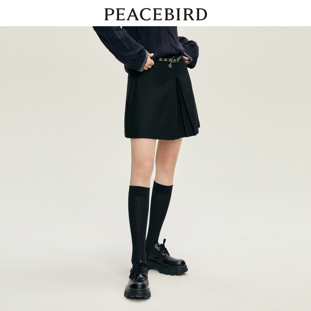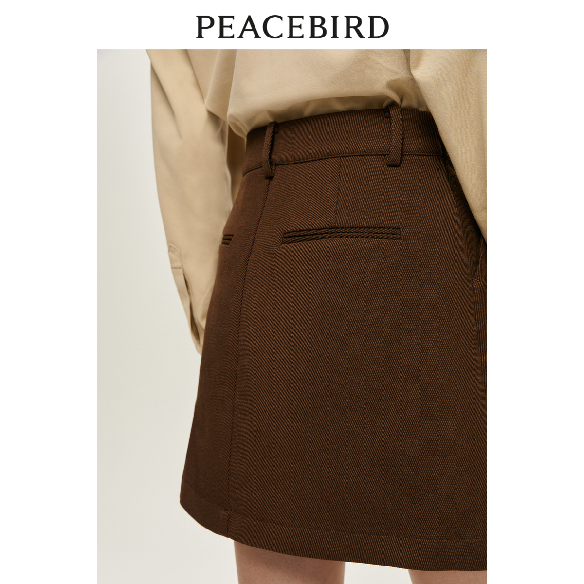 太平鸟女装高腰压褶半身裙冬季女卡其收腰短裙小个子A7GED412101