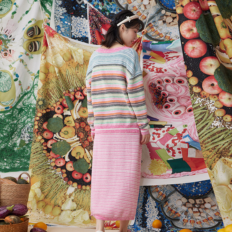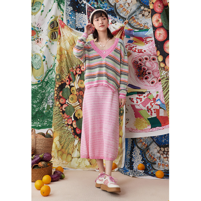 一城画一秋季气质显瘦显高修身条纹背心连衣裙吊带裙针织连衣裙