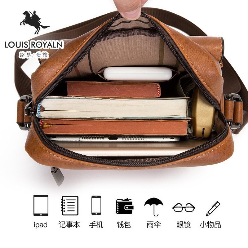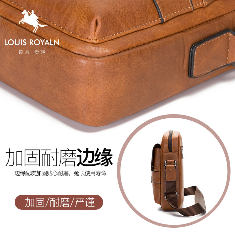 路易贵族男士包包斜跨挂包男包单肩包男斜挎包休闲竖款背包通勤