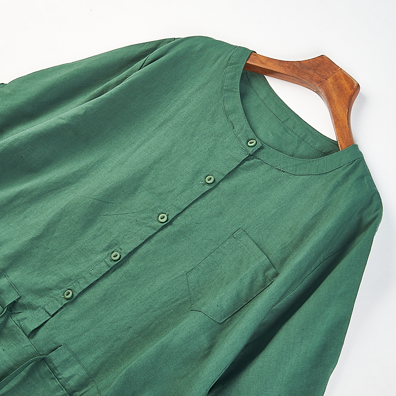 日系宽松棉麻短袖连衣裙女H82835夏季复古大码显瘦抽绳收腰中长裙