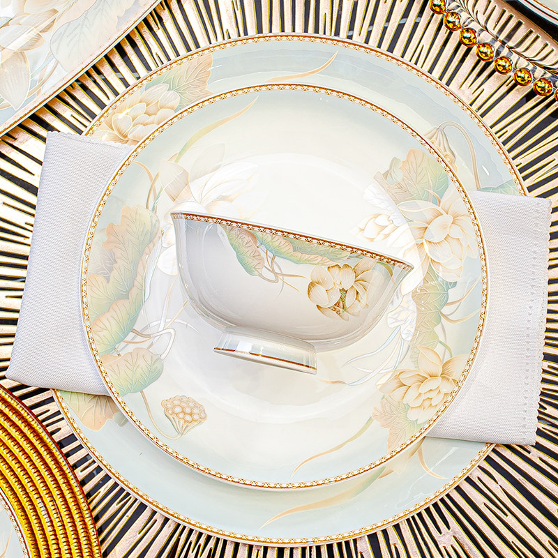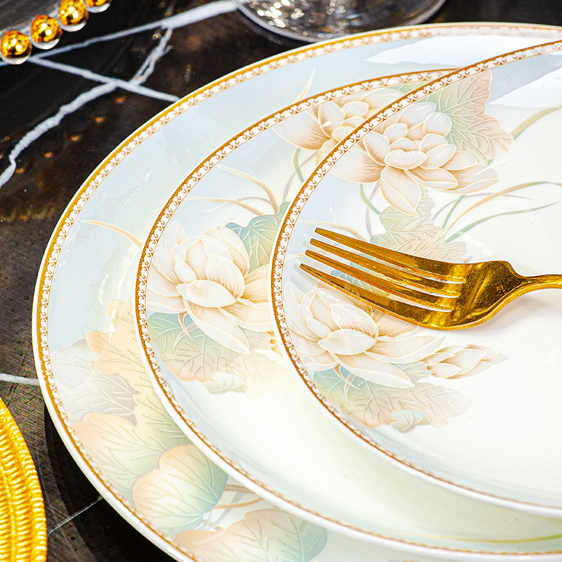金边芙蓉出水新款餐具景德镇中式轻奢乔迁陶瓷碗碟套装家用碗组合