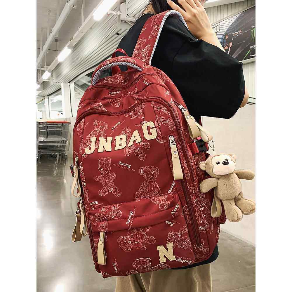 减负书包男生高中生大容量双肩包初中女生印花大学生休闲旅行背包