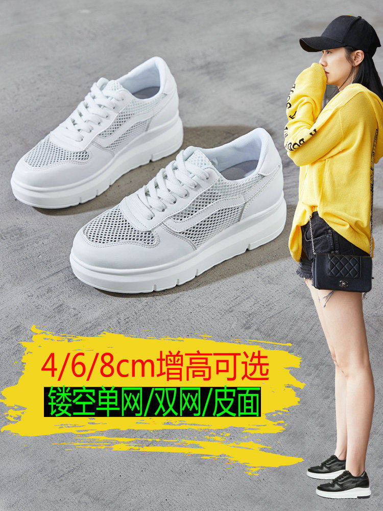 内增高女鞋8cm小白鞋小码32透气网面2022新款春秋百搭休闲34码33