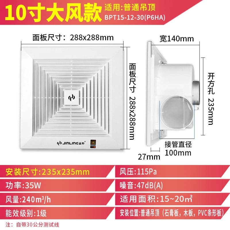 金羚卫生间排风扇吸顶式排气扇石