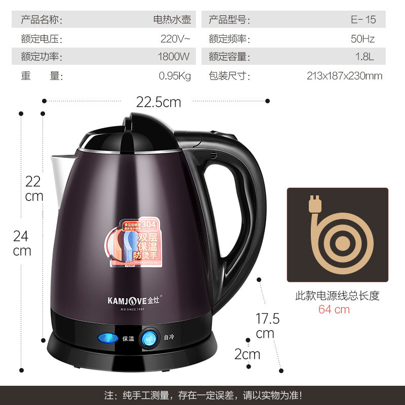 金灶E-15双层防烫电热水壶烧水壶自动家用保温一体电水壶自动断电